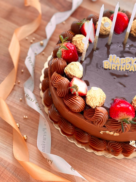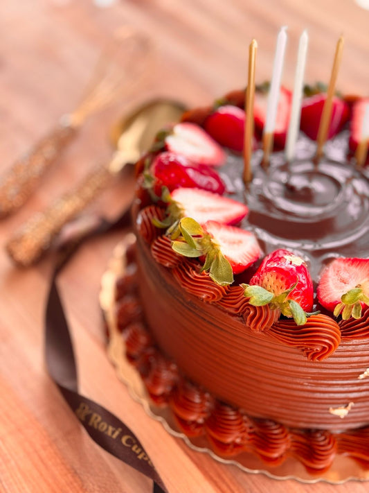 Torta de Chocolate con topping de fresas y chocolate Ferrero Rocher