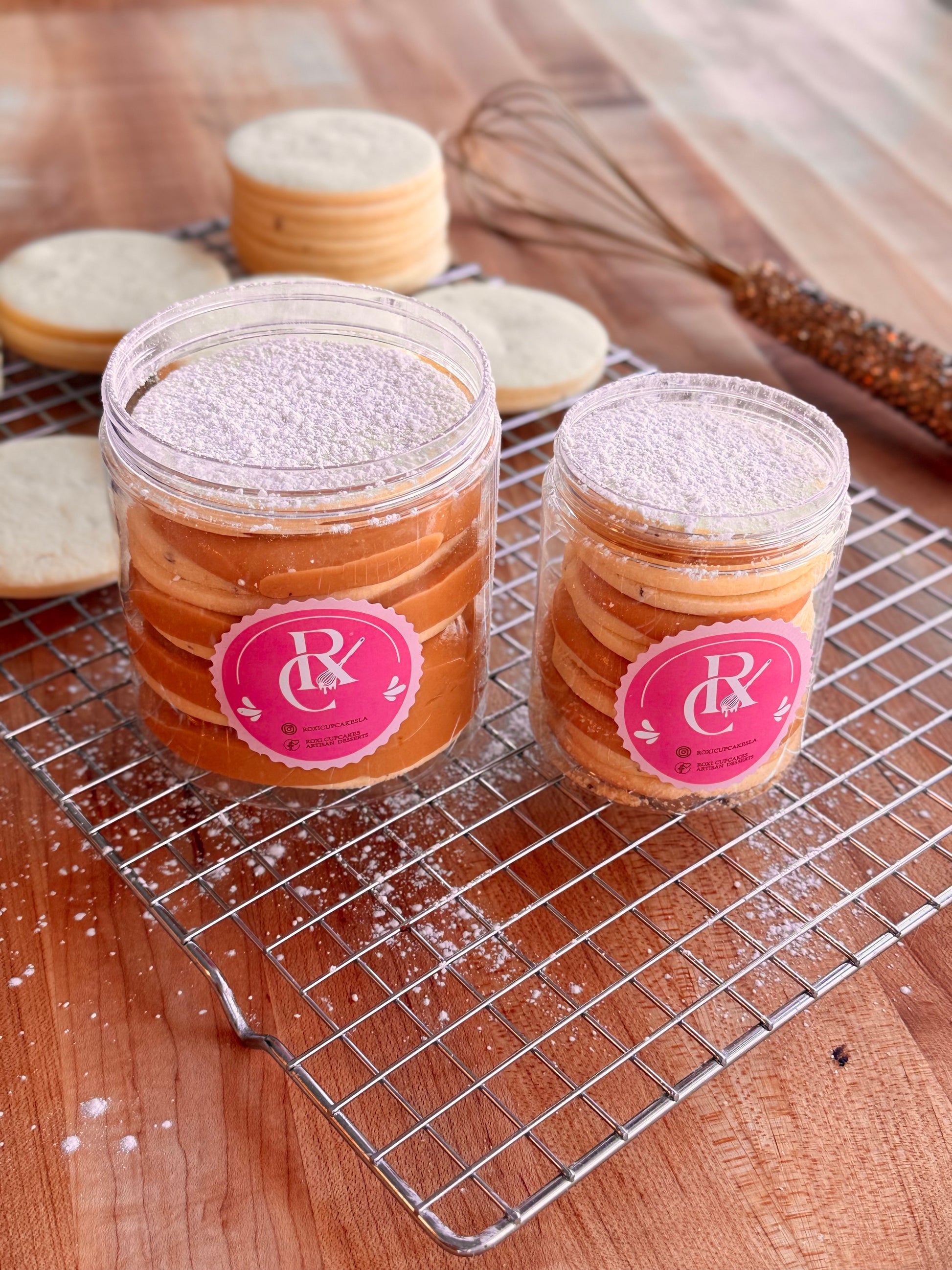 Delicado alfajor de maicena con pecanas, relleno con manjar de lúcuma.